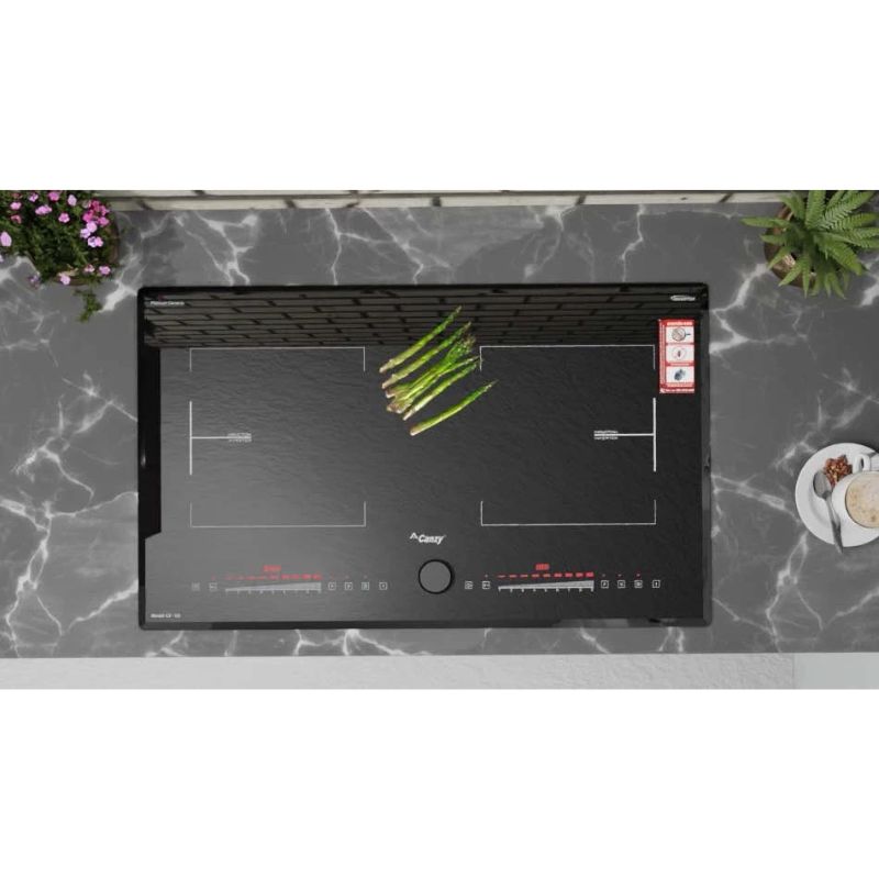 - Bếp đôi: 2 vùng từ, sử dụng mặt kính Platinum Ceramic vát 4 cạnh bo 4 góc sang trọng